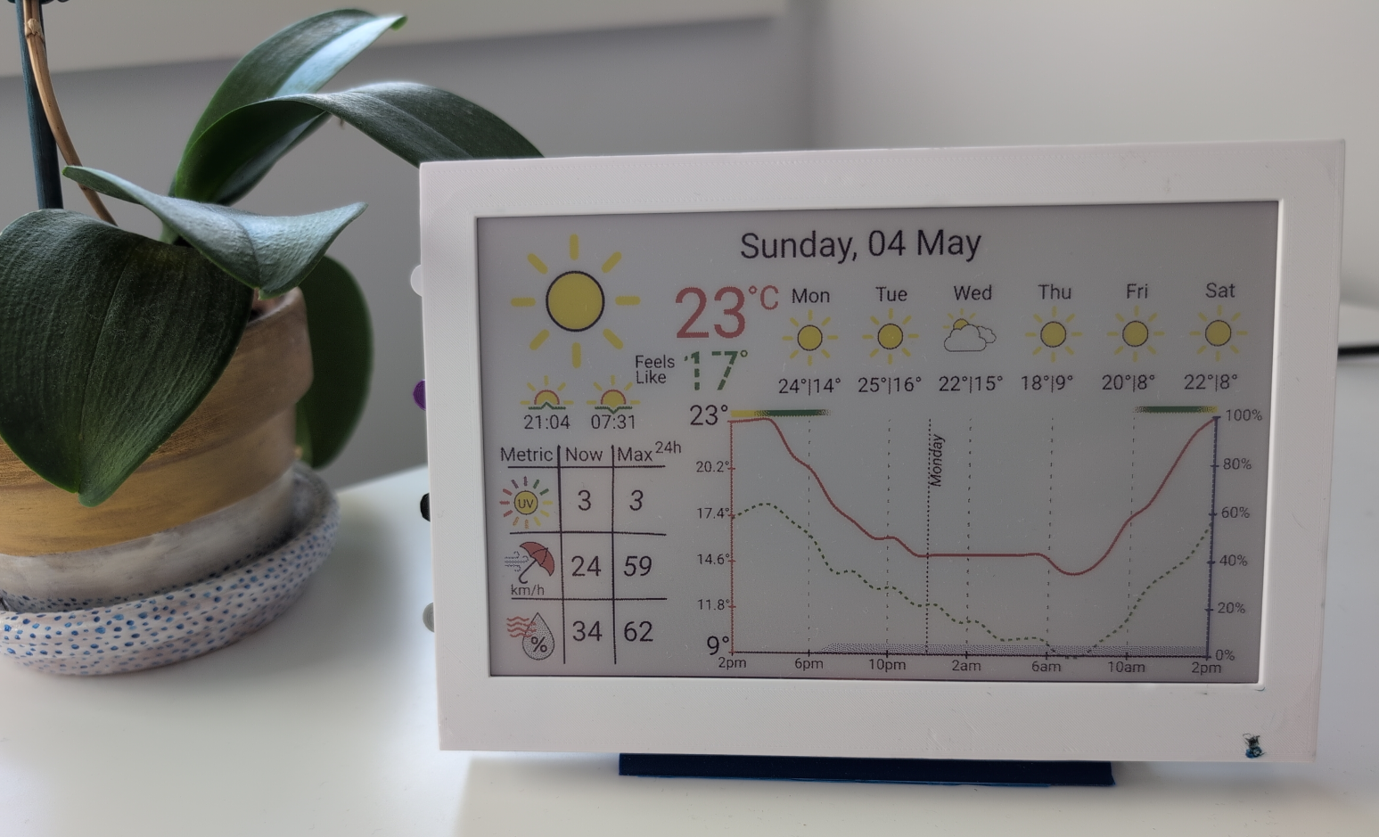 There are plenty of weather dashboard projects out there, almost all are black and white, none checked all boxes of my requirements, however the esp32 weather EPD stood out the most. Unfortunately, it was written in C++.