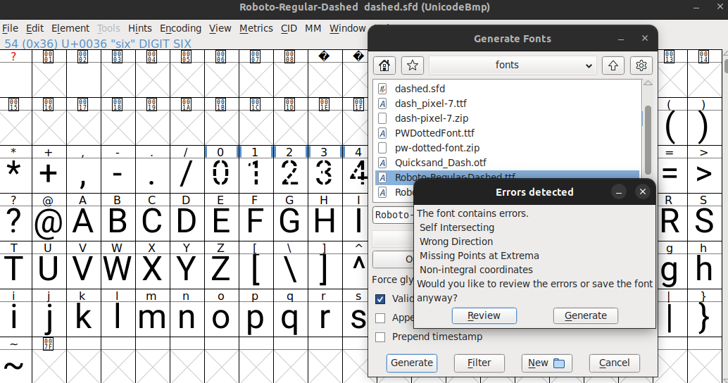 However, given that I use Green and Red in the graph, these colours are hard to distinguish for colour-blind people, so I needed to differntiate them. I created my own Dashed Roboto font using Font Forge software for the digit charachters only, since no such font existed before.